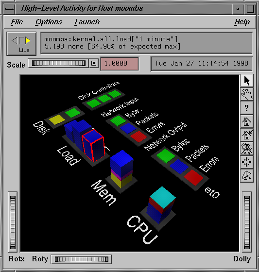 pmview is a generalized 3D Open Inventor tool for the Performance Co-Pilot (PCP). It supports the dynamic display of clusters of related performance metrics as utilization blocks (or towers) on a common base plane.
