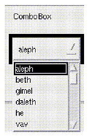 A SpinBox allows you to display, in sequence, a ring of choices. The SpinBox consists of a non-editable text area where a single choice is displayed; there are two arrow buttons next to the the text area, one on each side, for cycling through the choices. (See Figure 3-29.)