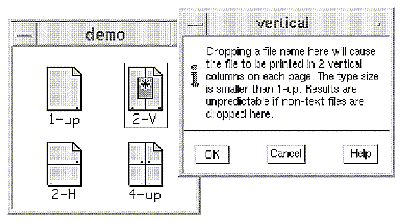For example, you can print the contents of a file by dragging an icon representing the file and dropping it on an icon representing a printer.
