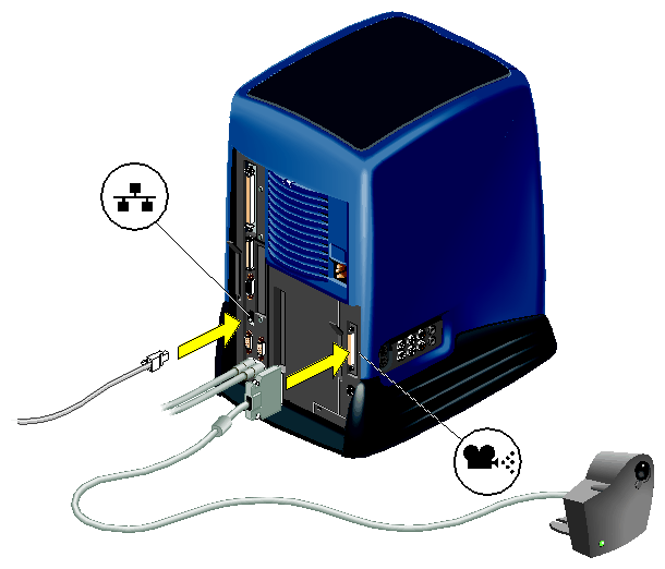 Figure 1-13 shows how to connect the O2Cam to the workstation. Connect the camera before turning on workstation so that the system recognizes the device.