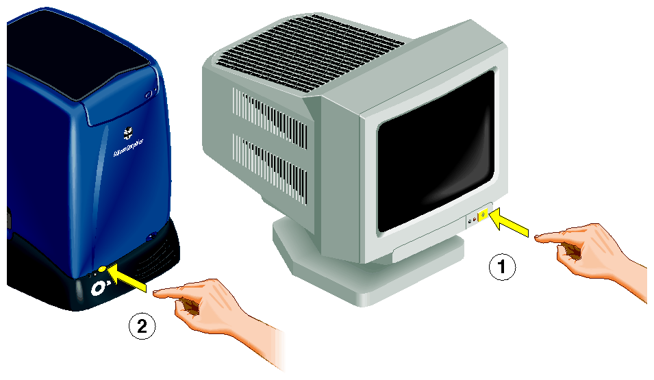 To turn your workstation on or off, press the power button on the front (Figure 1-12). It's not necessary to shut down the system software before turning it off.