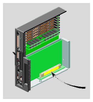 Inside the workstation, it's on the connector of the PCI tray, which is attached to the system module (Figure 1-22). (To remove the system module, see “Removing the System Module” in Chapter 2.)
