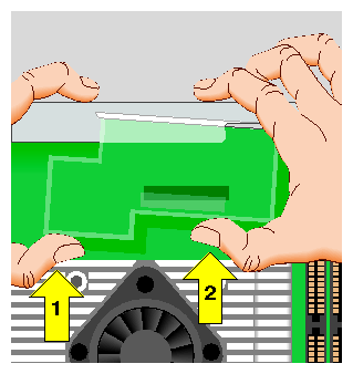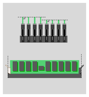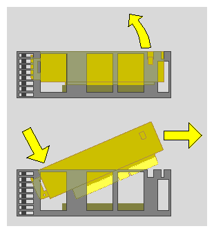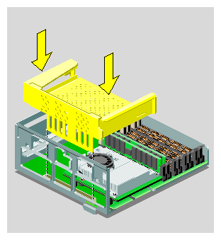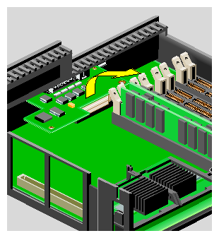 To see a 3D animation of installing memory modules, click Hardware Central . When the browser window opens, click “Hardware Overview” and then “Installing Memory Modules.” (If your web browser is not loaded, it takes a few seconds to load.) If you are viewing this on a remote server, the 3D animation is not available.
