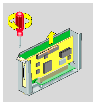 Remove the screw that secures the board (Figure 2-22). Disconnect the PCI board and slide it out of the tray. (It may be a little difficult to remove.)