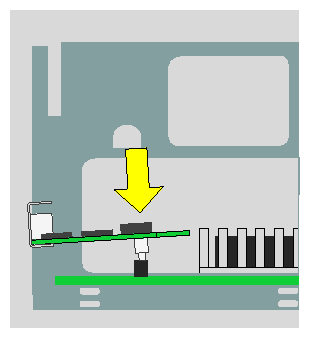 Push the board down into the socket firmly until it clicks and the connectors are completely seated. Look from the side as shown in Figure 2-39.