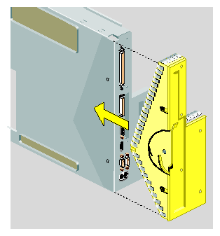 ![]() | Note: If the PCI board has an extra long I/O connector, slide out the side opposite the long I/O connector first. Then remove the side with the I/O connector. |