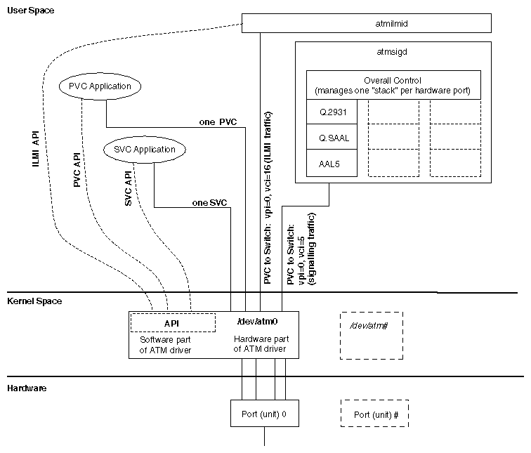 Signaling daemon (atmsigd) that implements the ATM User-Network Interface signaling standard for setting up and tearing down SVCs