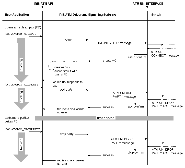 | ATMIOC_DROPPARTY | up/dn | Drops one destination address from a point-to-multipoint SVC. | |
