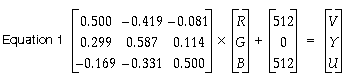 The YUV color space is obtained from RGB by the matrix transformation in equation 1.