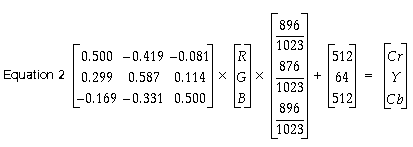 The CCIR color space is obtained from RGB by the matrix transformation in equation 2.