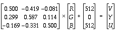 The YUV color space is obtained from RGB by the matrix transformation in the following equation.