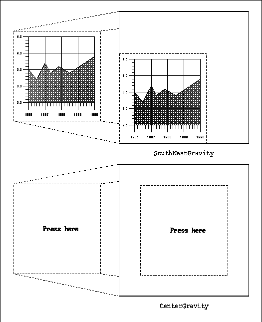 When an unobscured window is moved, its contents are moved with it, since none of the pixel values need to be changed. But when a window is enlarged or shrunk, the server has no idea where in the resulting window the old contents should be placed, so it normally throws them out. The bit_gravity attribute tells the server where to put the existing bits in the larger or smaller window. By instructing the server where to place the old contents, bit gravity allows some clients (not all can take advantage of it) to avoid redrawing parts of their windows.