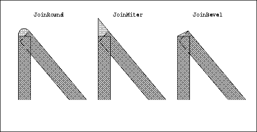 | JoinMiter | Specifies that the outer edges of the two lines should extend to meet at an angle. If the angle between the two lines is less than 11 degrees, JoinBevel is used. | |
