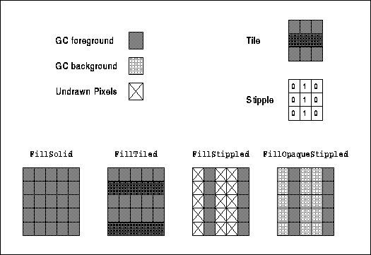 Figure 5-12 demonstrates the four fill styles demonstrated on small pixmaps.