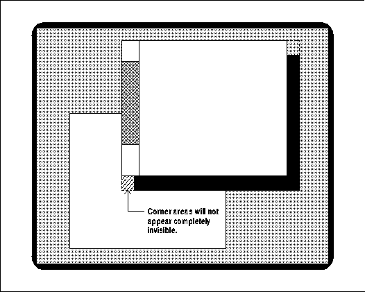 When the window with the shadow is moved around the screen when no other applications are on the screen, the shadow looks good. But when the window is moved over other applications, a strange thing happens. The background of the root window shows itself in the “invisible” corner of the shadow, as shown in Figure 16-3, later in this chapter.
