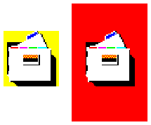 You can draw a shadow under your icon. This is recommended only for Front Panel icons. Do not use this for File Manager icons. Figure 13-7 shows dynamic color shadows.