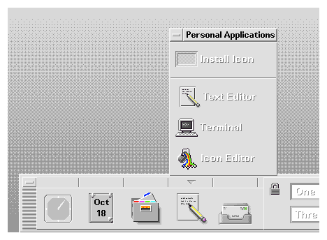 Minimized window icons appear on the desktop when a window is minimized. The icon should represent the application that controls the minimized window, as shown in Figure 13-4. These icons are different from the icons used in the Front Panel in that they represent running applications, although they are the same size.