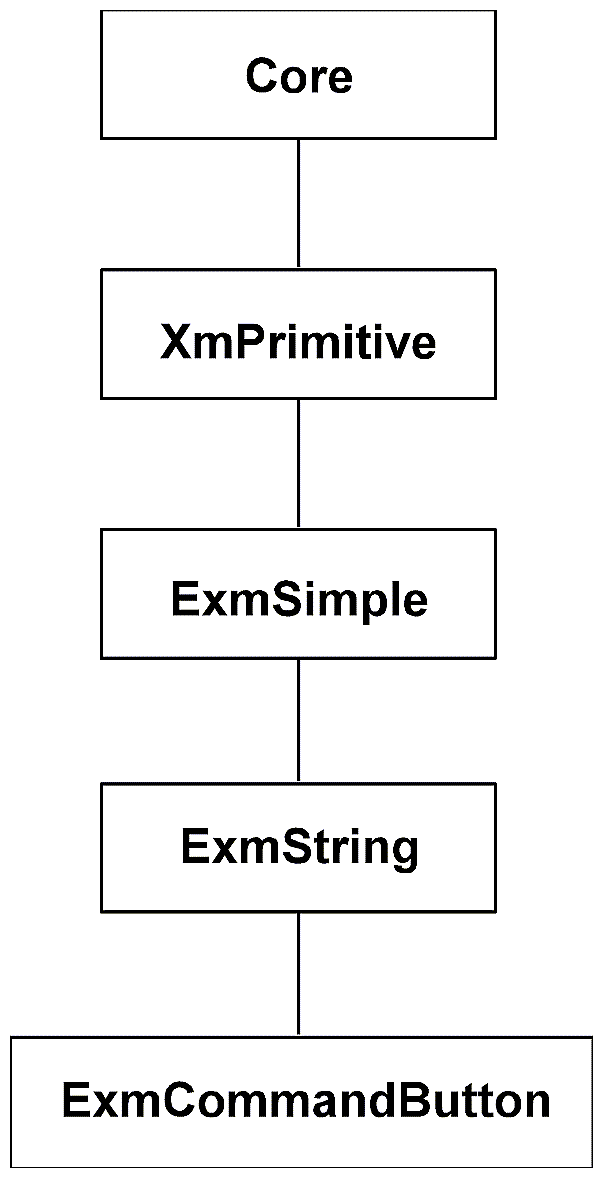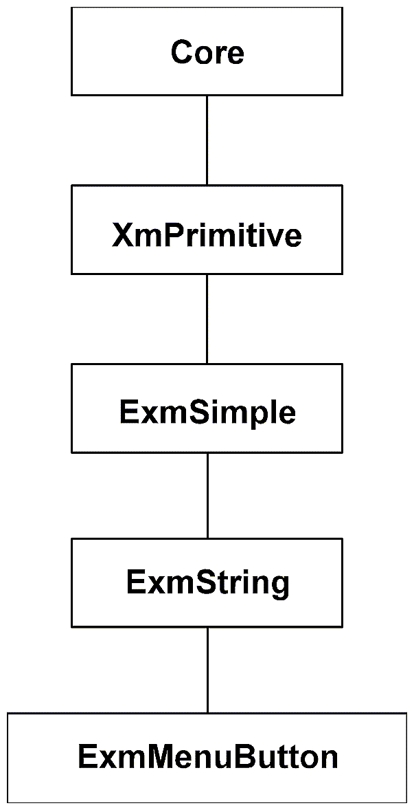 The ExmMenuButton demonstration widget is a subclass of ExmString. Figure 11-2 shows its position in the hierarchy.
