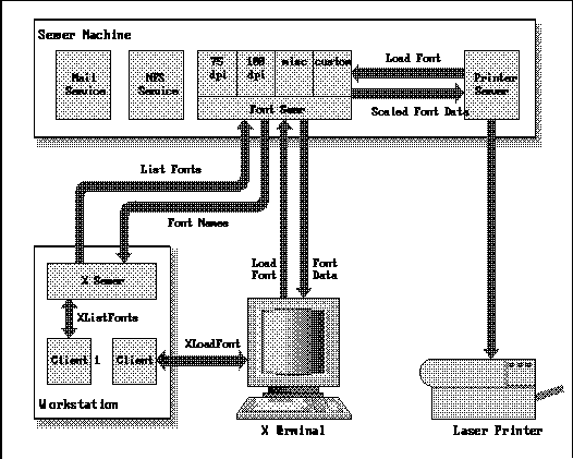 The X Window System supports many different display fonts, with different sizes and type styles. (These are screen fonts and are not to be confused with printer fonts.)