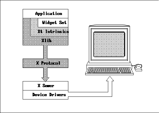 In this book, we'll refer to the combination of the Xt Intrinsics and one widget set as the X Toolkit or just the Toolkit. When referring to the Xt Intrinsics layer alone, we'll use Xt, or the Intrinsics.