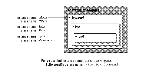 For many resources, the class name is simply the same as the resource name, except that the XmC prefix is used, and, the first letter of the name is conventionally capitalized. For example, the class name constant for the XmNbackgroundPixel resource is XmCBackgroundPixel. However, when appropriate, a single class can be used for a group of related resources. This allows a single setting in the resource database to control the value of multiple resources.