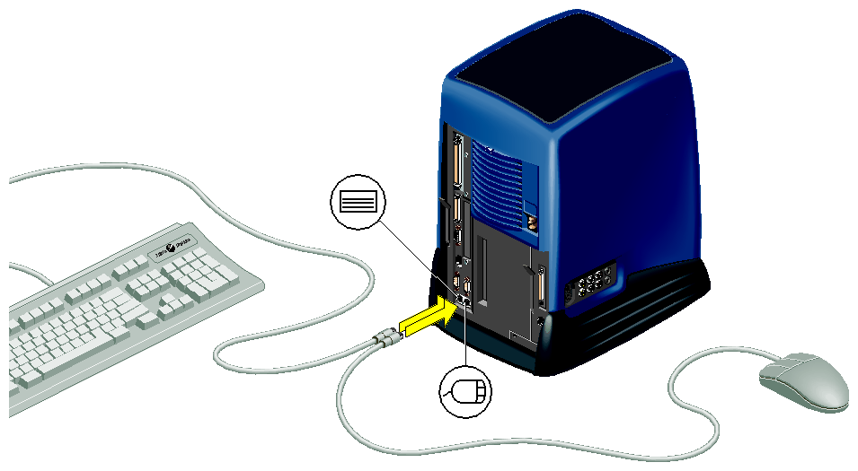 Connect the keyboard and the mouse to the workstation (Figure 1-6).