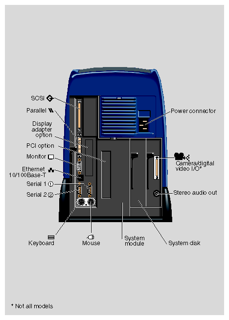 Take a minute to familiarize yourself with your workstation. Note that some models do not have video connectors on the side or rear panel.
