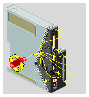 Use a Phillips screwdriver to remove five screws in the rear and two screws on the underside, in the locations shown (Figure 2-32). Keep the two screws from the underside separate. When reinstalling the faceplate you must use the same screws.