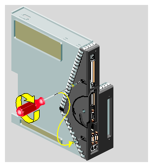 Insert a screwdriver in the small opening shown (Figure 2-34). Use a twisting motion first to release the PCI connector from the slot on the system module. Then use an up and down motion to release the PCI tray.