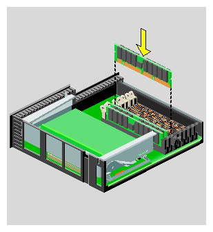 To see a 3D animation of installing memory modules, click Hardware Central . When the browser window opens, click “Hardware Overview” and then “Installing Memory Modules.” (If your web browser is not loaded, it takes a few seconds to load.) If you are viewing this on a remote server, the 3D animation is not available.
