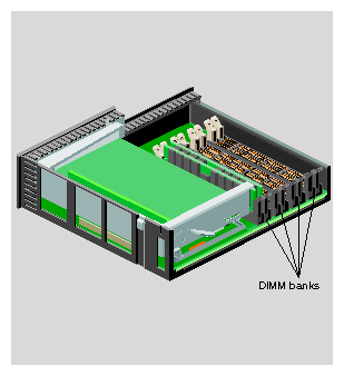 Familiarize yourself with the memory (DIMM) banks (Figure 2-7) and (Figure 2-8). There are four banks comprised of eight sockets, numbered 1 through 8. Two sockets form a bank.