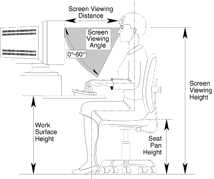 Table 1 shows recommended guidelines for furniture and system adjustment, as developed by the American National Standards Institute (ANSI).*